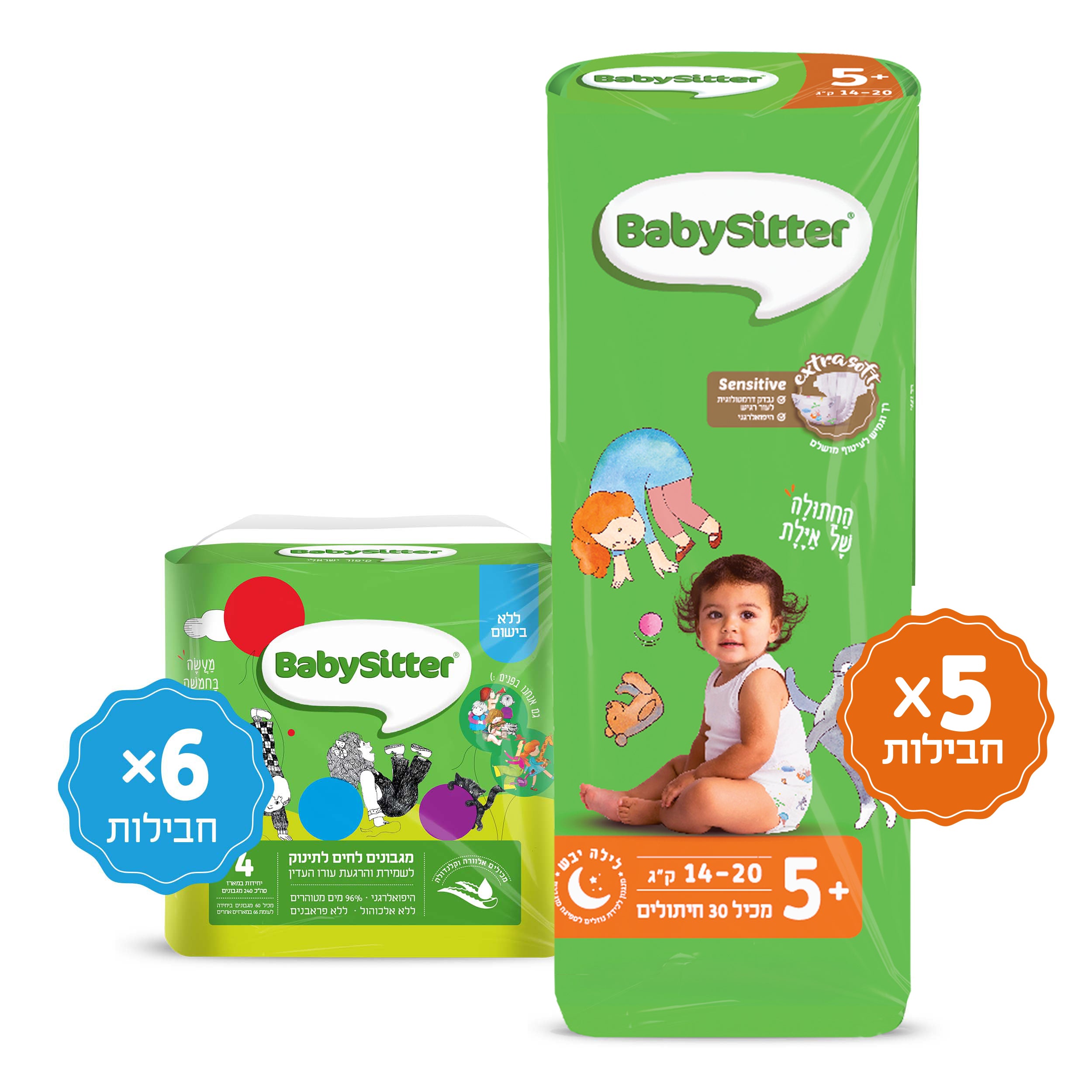5 חבילות חיתולי BabySitter מידה 5+ - 30 יחידות
