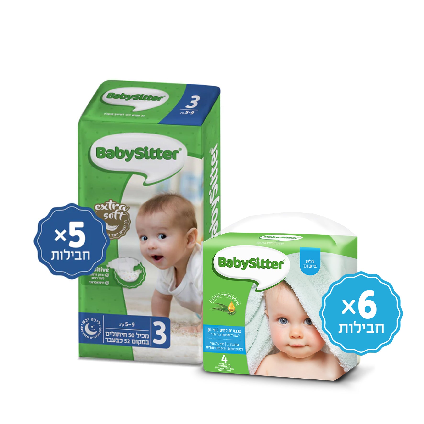 6 רביעיות מגבוני BabySitter - מאגדת מגבונים לחים לתינוק ללא בישום